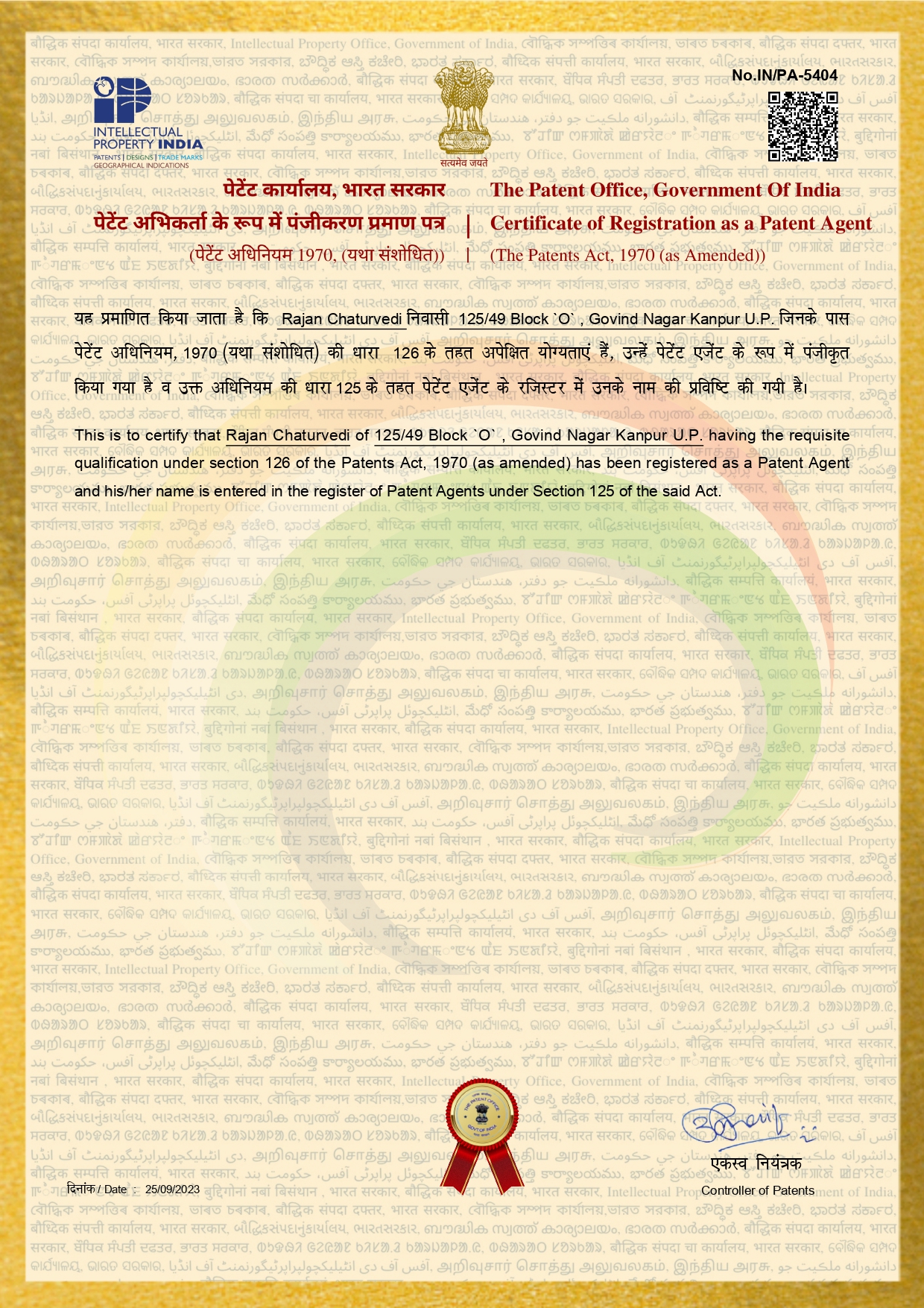 Rajan Chaturvedi Qualified Indian Patent Agent - Lisence Number - 5404